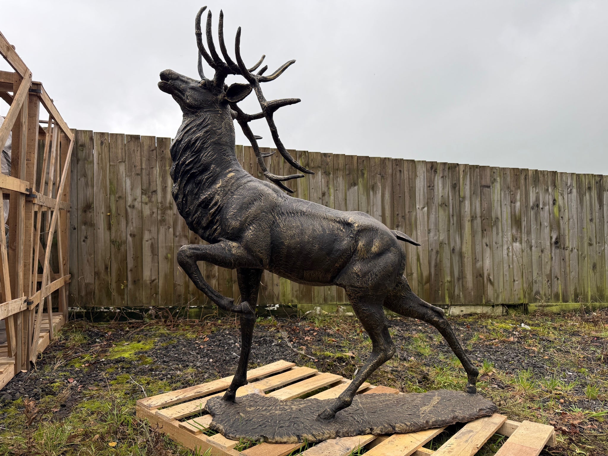Bring the majestic beauty of the wilderness to your outdoor or indoor space with this brand new enormous 180cm high elk statue. Crafted with meticulous attention to detail, this statue captures the noble presence of an elk in a proud and regal stance, making it a striking focal point for gardens, patios, or interiors. Made from high-quality cast iron, ensuring durability and the ability to withstand various weather conditions. This robust construction guarantees that the statue will remain a captivating feature for years. Suitable for a variety of settings, including gardens, lawns, patios, and indoor spaces. It can serve as a decorative centerpiece, a thematic element in a wildlife-inspired landscape, or a unique statement piece for interiors.